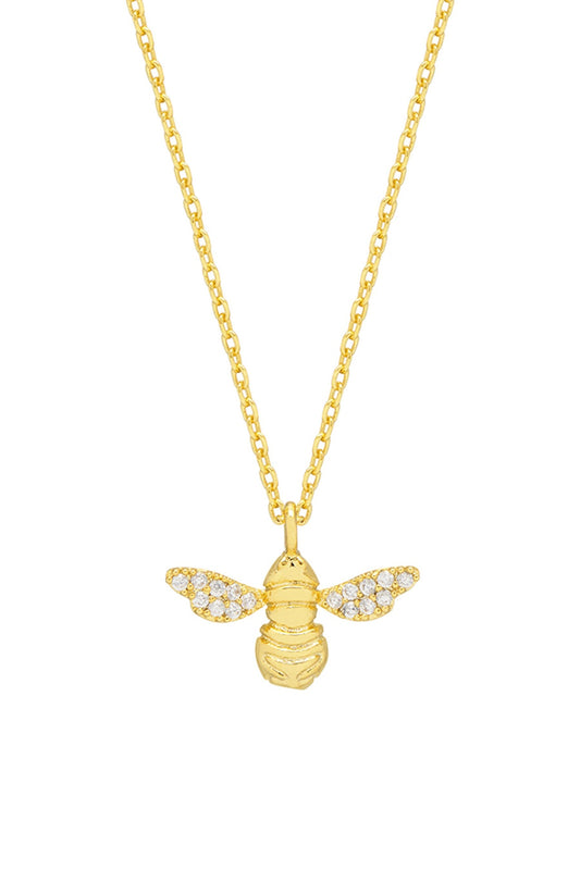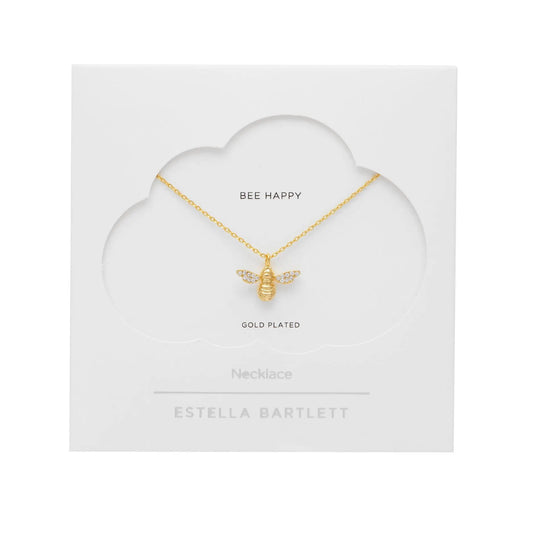 Gold plated bee necklace with sparkle wings make a wonderful classic necklace. Presented on a quote card 'Bee Happy' and gift bag.